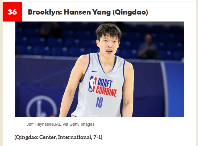 06月14日訊 HoopsHype更新2025年NBA模擬選秀,中國男籃新星、青島隊中鋒楊瀚森次輪總第36順位被籃網(wǎng)選中。