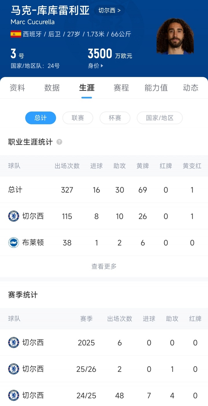 27歲的西班牙后衛(wèi)庫庫雷利亞,2022年以6350萬歐元的轉(zhuǎn)會費從布萊頓加盟切爾西,至今已代表切爾西出戰(zhàn)115場比賽,貢獻8粒進球和10次助攻。庫庫雷利亞與切爾西原本的合同將在2028年6月到期。