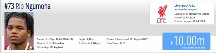 現(xiàn)年16歲的恩古莫哈昨天代表利物浦打進(jìn)了他的英超首個進(jìn)球,而且是個絕殺制勝球。在目前德轉(zhuǎn)16歲的同齡人中,恩古莫哈毫無疑問是世界第一,而在他之下是400萬歐的16歲梅斯小將馬德約。