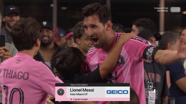 08月28日訊 聯(lián)盟杯半決賽,梅西梅開二度,邁阿密國際淘汰奧蘭多城晉級決賽。梅西當選本場比賽最佳球員。