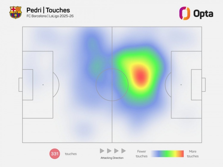 數(shù)據(jù)統(tǒng)計顯示,佩德里是本賽季歐洲五大聯(lián)賽中唯一同時達(dá)成以下5項數(shù)據(jù)的球員:射門5+次(5次)、創(chuàng)造機會5+次(6次)、成功傳球200+次(251次)、奪回球權(quán)20+次(25次)以及持球推進(jìn)100+次(101次)??胺Q巴薩的中場發(fā)動機。