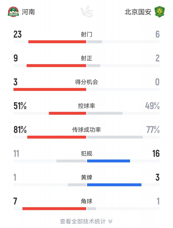 國安上輪以刷新隊(duì)史的0-6不敵泰山后,本輪面對(duì)中超第12的河南隊(duì)再遭敗績,并且被狂轟23腳射門9射正。