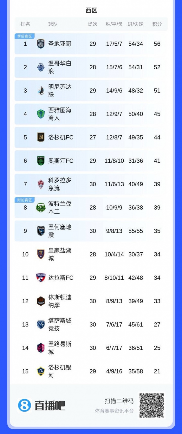 美職聯(lián)積分榜,邁阿密國際少賽跌至東部第8,暫未進(jìn)入季后賽區(qū)。