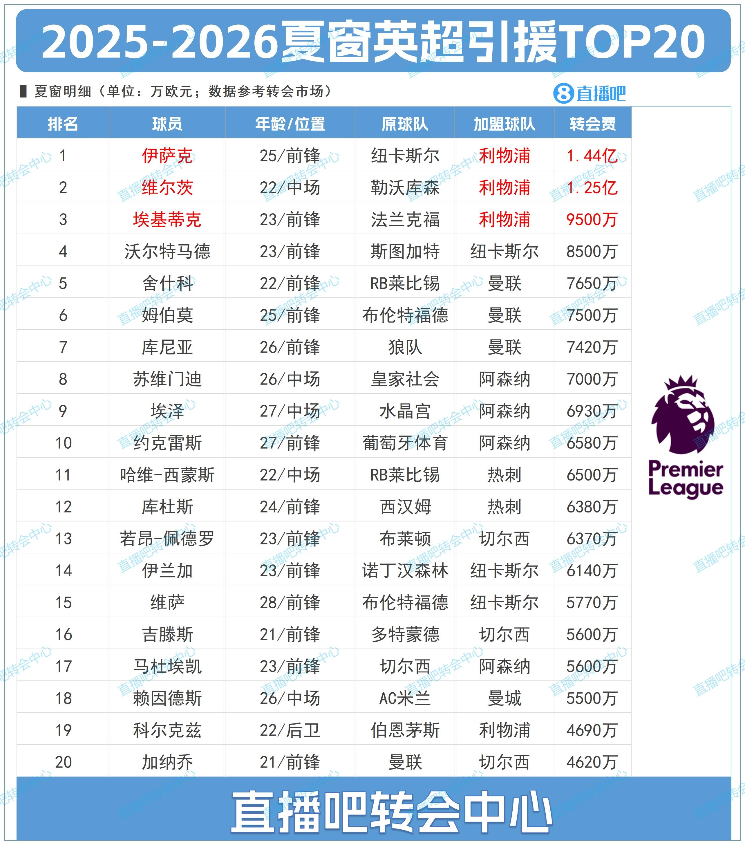 09月14日訊 夏窗英超引援TOP20中總共有6名中鋒,目前還剩伊薩克和舍什科沒(méi)有為新東家進(jìn)球,以下為詳細(xì)數(shù)據(jù)。