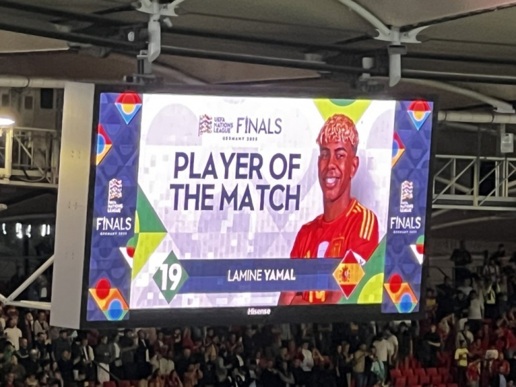 6月6日訊 歐國聯(lián)半決賽,西班牙5-4法國,亞馬爾首發(fā)出戰(zhàn),打進2球,還有2次過人成功和3次關(guān)鍵傳球,評分9.7全場最佳,他也當選為本場比賽最佳球員。