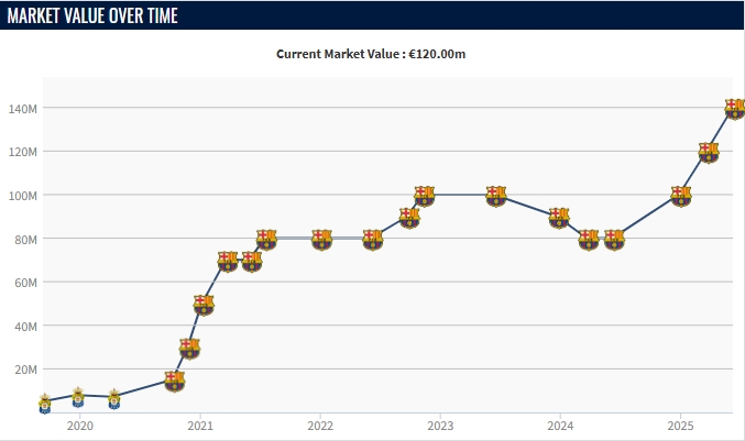 06月09日訊 德轉(zhuǎn)更新西甲球員身價(jià),佩德里身價(jià)上漲2000萬歐至1.4億歐,在全球中場球員中排名第2僅次于貝林厄姆,佩德里的身價(jià)目前排名西甲第5、世界第7。
