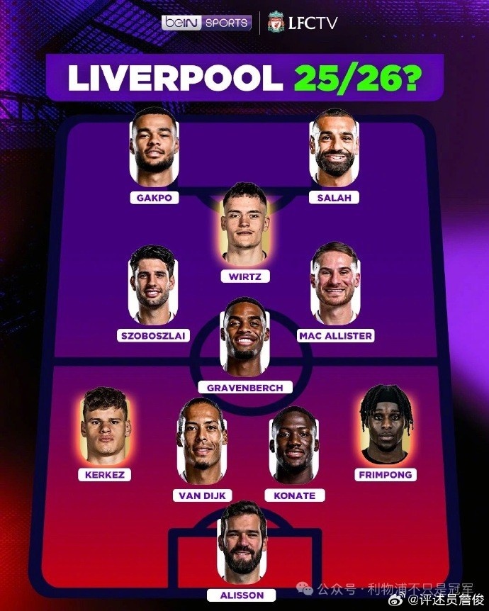 利物浦預(yù)測(cè)首發(fā):阿利森;科爾克茲、范迪克、科納特、弗林蓬;赫拉芬貝赫、索博斯洛伊、麥卡利斯特、維爾茨;加克波、薩拉赫