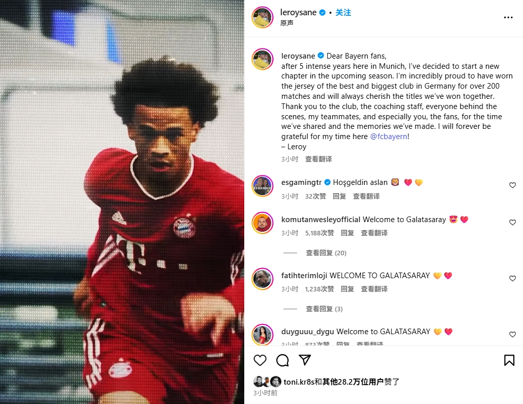值得一提的是,今日早些時候薩內在個人社媒上發(fā)文,告別拜仁球迷。