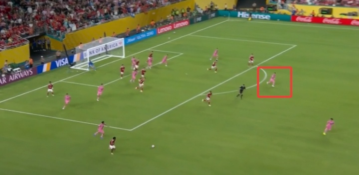比賽最后一攻,開(kāi)羅國(guó)民反擊,梅西一路回追到本方禁區(qū)防守。