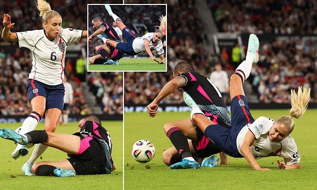 比賽尾聲時(shí)段,在一次拼搶中,博努奇毫不留情地朝前英格蘭女足隊(duì)長(zhǎng)斯蒂芬-霍頓放鏟,得球后揚(yáng)長(zhǎng)而去,而后者則痛苦地倒在場(chǎng)內(nèi)。