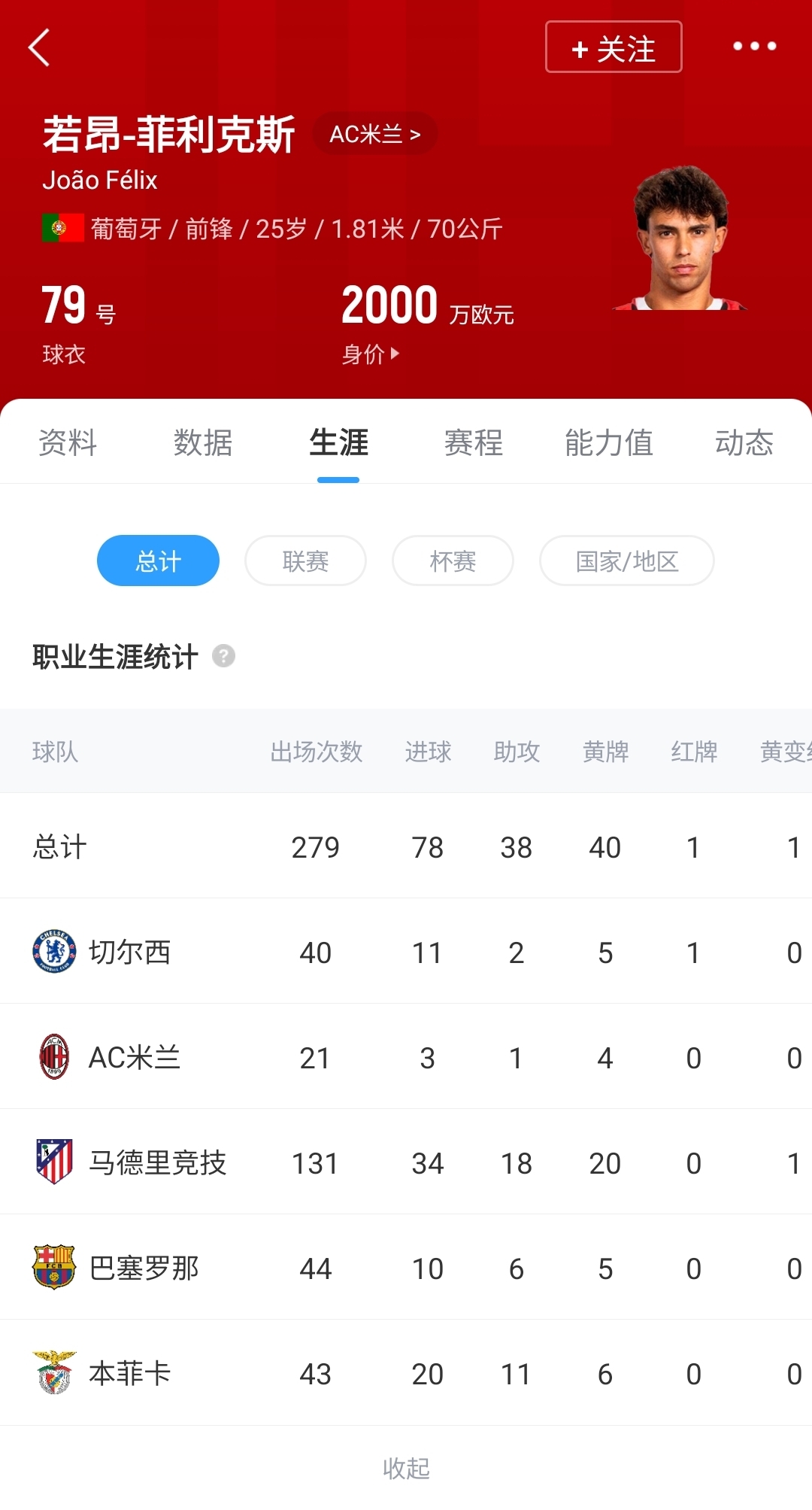 職業(yè)生涯至今菲利克斯的累計轉(zhuǎn)會費已經(jīng)達(dá)到了1.957億歐↓