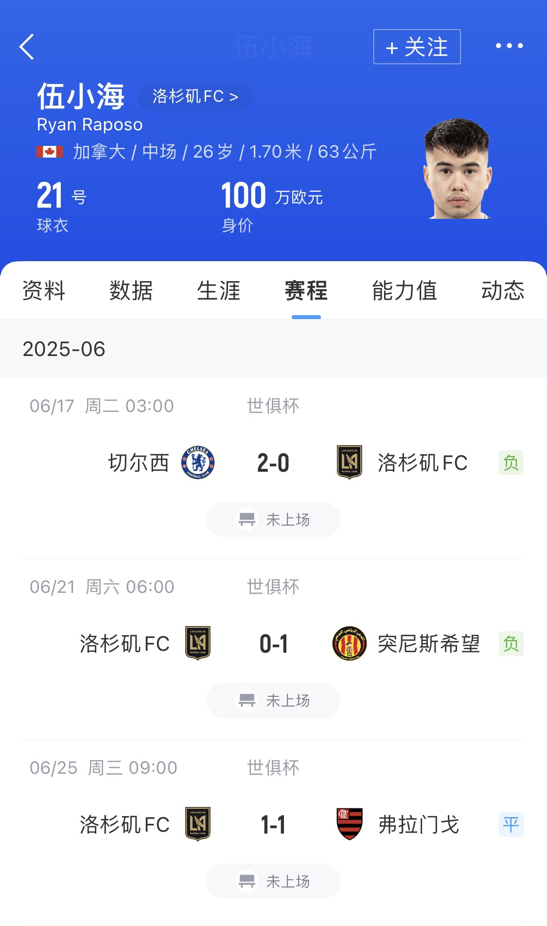 本屆世俱杯,伍小海3場小組賽全部在替補席枯坐板凳。