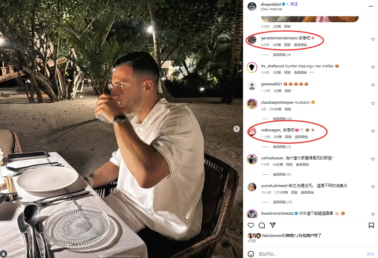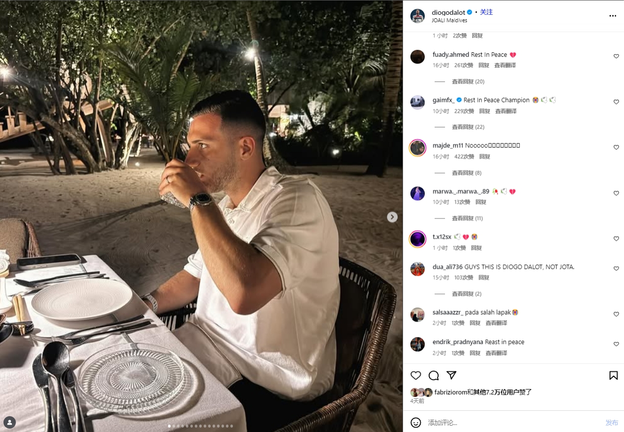 07月04日訊 利物浦前鋒若塔不幸遭遇車禍離世,有部分網友將達洛特(Diogo Dalot)的社媒當成若塔,涌入評論區(qū)進行悼念。