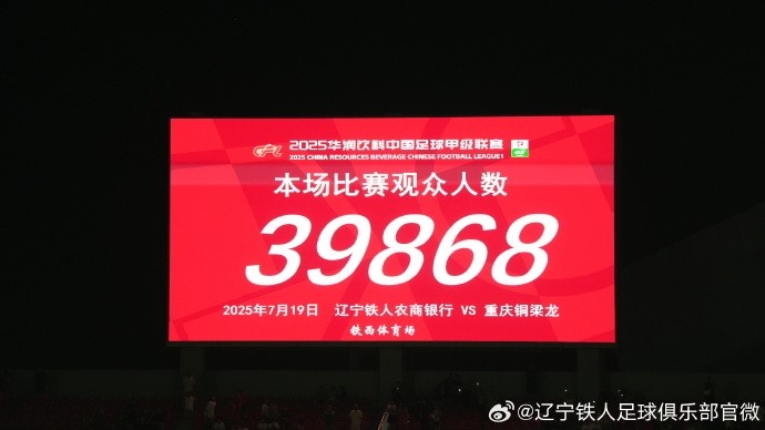 現(xiàn)場共有39868名觀眾球迷為鐵人助威,再一次刷新了鐵西體育場的上座紀錄,我們前進的每一步都是新的歷史,每一名球迷都是鐵人歷史的見證者。未來不止于此!我們攜手努力,共同沖擊更多的歷史紀錄。