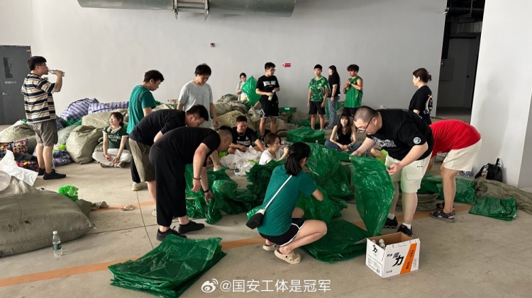 7月20日訊 據(jù)博主“國安工體是冠軍”報道,今天國安球迷和俱樂部工作人員又來到工體,對昨晚展示的TIFO進(jìn)行回收整理。