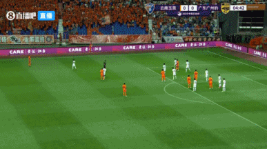 開場第1分鐘,廣州豹球員解圍不遠,侯永永跟上一腳抽射,皮球稍稍高出球門。↓