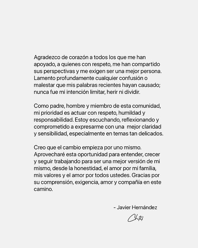 作為一名父親、男人和這個(gè)社區(qū)的一員,我的首要任務(wù)是以尊重、謙遜和負(fù)責(zé)任的方式行事。我正在傾聽、反思,并承諾要以更清晰和更具同理心的方式表達(dá)自己,尤其是在如此敏感的問(wèn)題上。我相信改變始于自身。