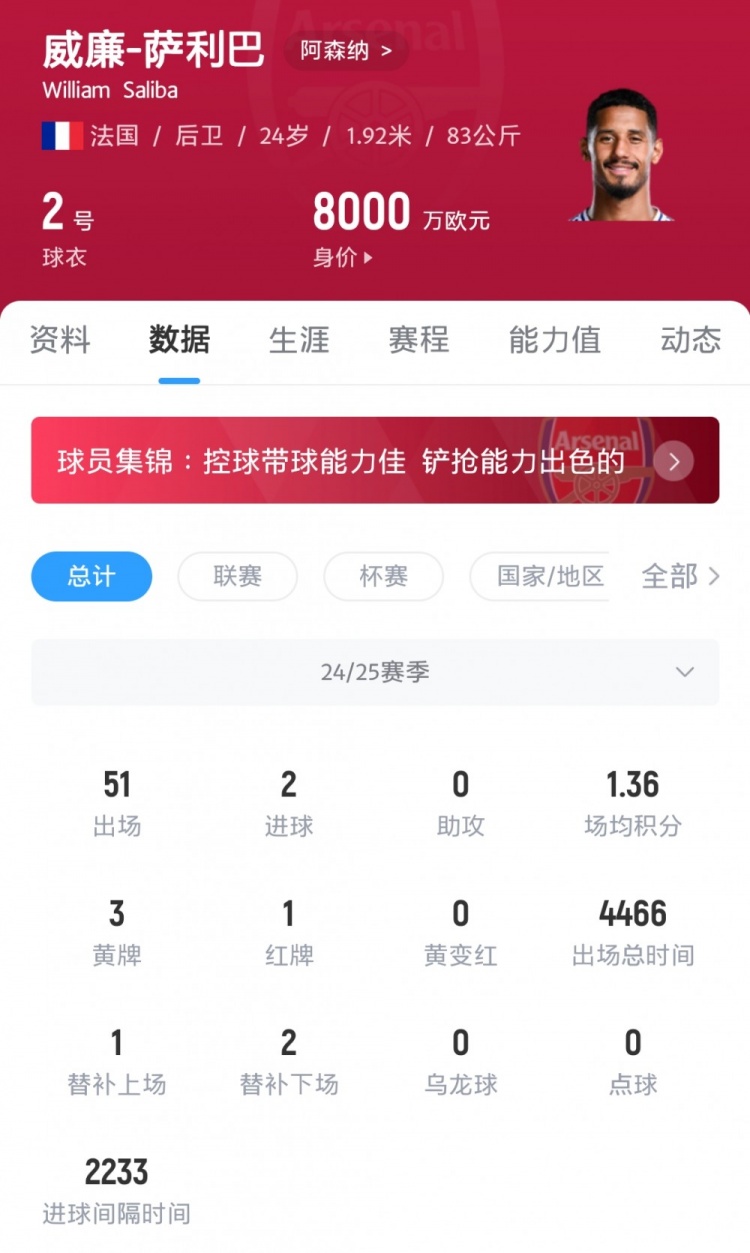 而阿森納正在努力推進(jìn)與薩利巴續(xù)約,雙方現(xiàn)有的合同將在2027年夏天到期。