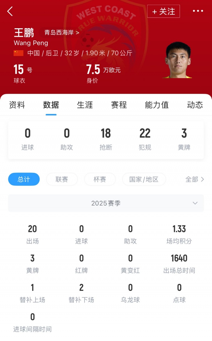 王鵬現(xiàn)年32歲,司職后衛(wèi),職業(yè)生涯曾效力于長春亞泰、滄州雄獅、深圳。