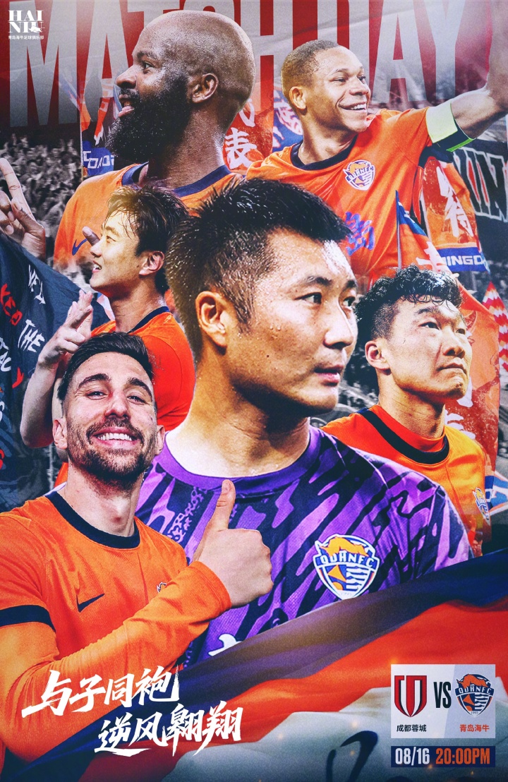 08月16日訊 今晚20點,中超第21輪成都蓉城vs青島海牛。賽前首發(fā)陣容已經(jīng)公布。
