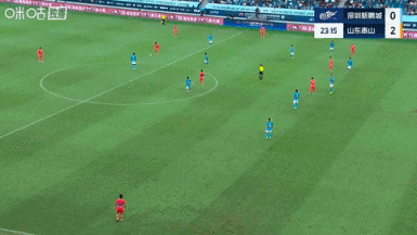 比賽第23分鐘,謝文能精準傳中,卡扎伊什維利頭球破門,場上比分深圳新鵬城0-2山東泰山。