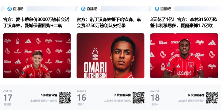 此前諾丁漢森林在8月16日已經(jīng)官宣簽下哈欽森和麥卡蒂,加上卡利穆恩多,森林在3天內(nèi)花費(fèi)了超過(guò)1億歐元。今年夏窗,諾丁漢森林在轉(zhuǎn)會(huì)市場(chǎng)上已經(jīng)投入超過(guò)1.7億歐元。