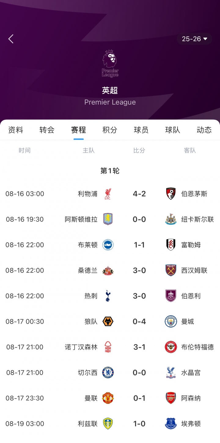 08月19日訊 25/26賽季英超首輪戰(zhàn)罷,積分榜上,曼城大勝領(lǐng)跑,衛(wèi)冕冠軍利物浦和2支升班馬在內(nèi)的7支球隊(duì)全取三分。