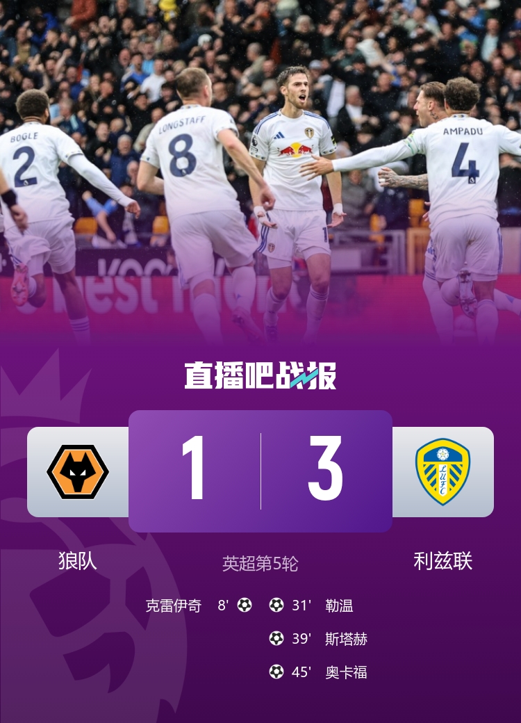 9月20日訊 北京時(shí)間9月20日22:00,英超聯(lián)賽第5輪狼隊(duì)迎戰(zhàn)利茲聯(lián)的比賽在莫利諾克斯球場(chǎng)進(jìn)行,上半場(chǎng)克雷伊奇閃擊首開(kāi)記錄,勒溫頭球扳平比分,斯塔赫定位球直接破門(mén),奧卡福低射擴(kuò)大比分,下半場(chǎng)達(dá)爾洛獻(xiàn)精彩撲救,最終狼隊(duì)1-3利茲聯(lián)開(kāi)局五連敗。