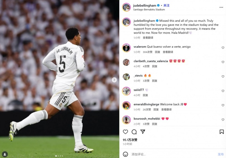 他也在賽后通過社媒曬出自己的比賽照,并配文:“深切想念這一切和你們每個人。今日球場給予的愛、以及康復(fù)期間各界的支持令我深受感動,這對我意味著全世界。征程此刻重啟?;蜀R加油!”
