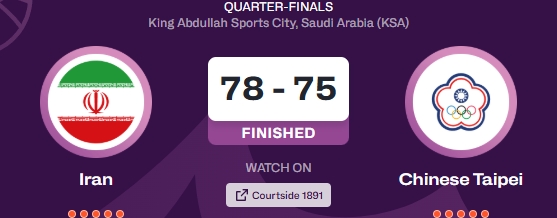 伊朗末節(jié)打出26-11,完成21分大逆轉(zhuǎn),晉級四強(qiáng),下一場他們將對陣澳大利亞。