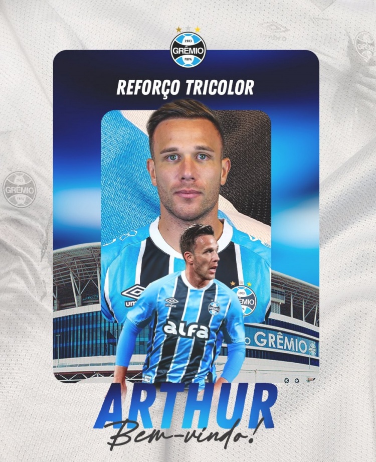 8月28日訊 巴甲球隊格雷米奧今日更新社媒,官方宣布阿圖爾以租借方式加盟。