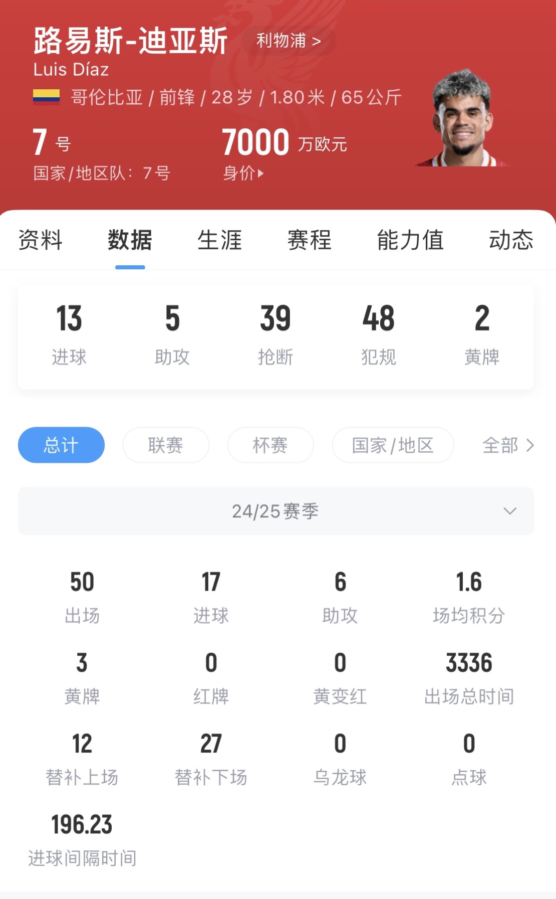 這位記者表示,路易斯-迪亞斯的轉(zhuǎn)會將于近日升溫,利物浦方面知道迪亞斯渴望加盟巴薩,而巴薩不愿支付超6000萬歐轉(zhuǎn)會費(fèi),球員目前尚未接受紅軍的續(xù)約報(bào)價(jià)。