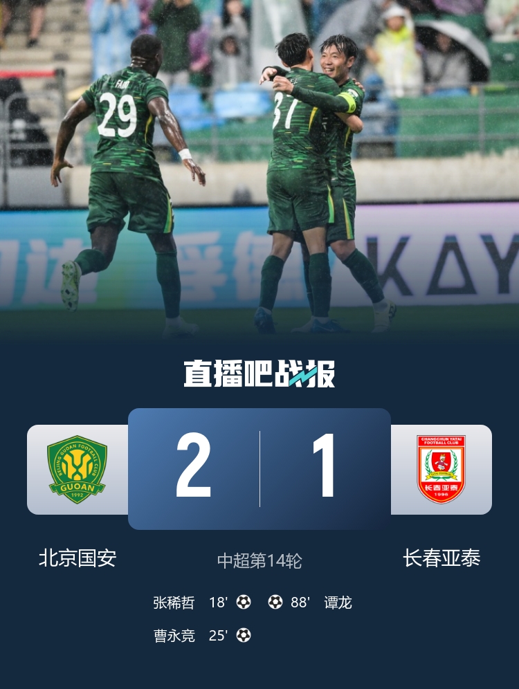 全場(chǎng)比賽結(jié)束,最終北京國(guó)安2-1長(zhǎng)春亞泰。