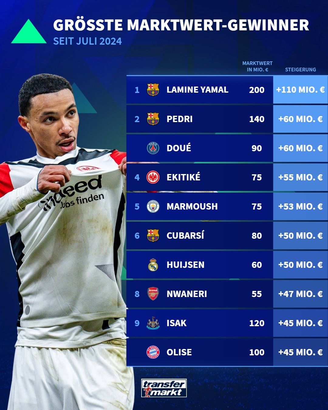 4-?;倏?,法蘭克福,現(xiàn)身價7500萬,增長5500萬