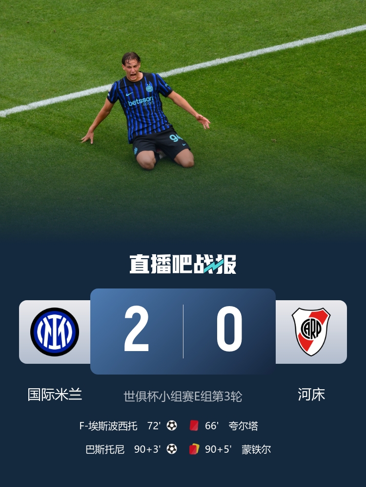06月26日訊 世俱杯小組賽國米2-0擊敗河床。兩隊(duì)在場上沖突不斷,河床吃到2張紅牌,鄧弗里斯和阿庫尼亞還產(chǎn)生了沖突。