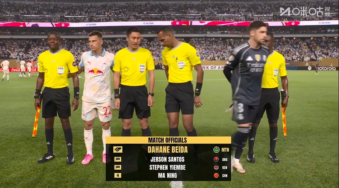 世俱杯小組賽H組第3輪,薩爾茨堡紅牛vs皇馬,馬寧擔(dān)任第四官員。