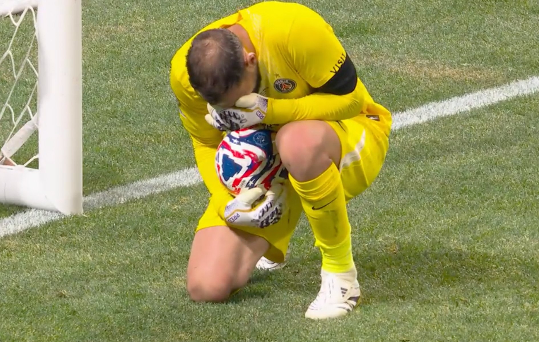 后續(xù)鏡頭給到,多納魯馬自責(zé)地單膝跪地。