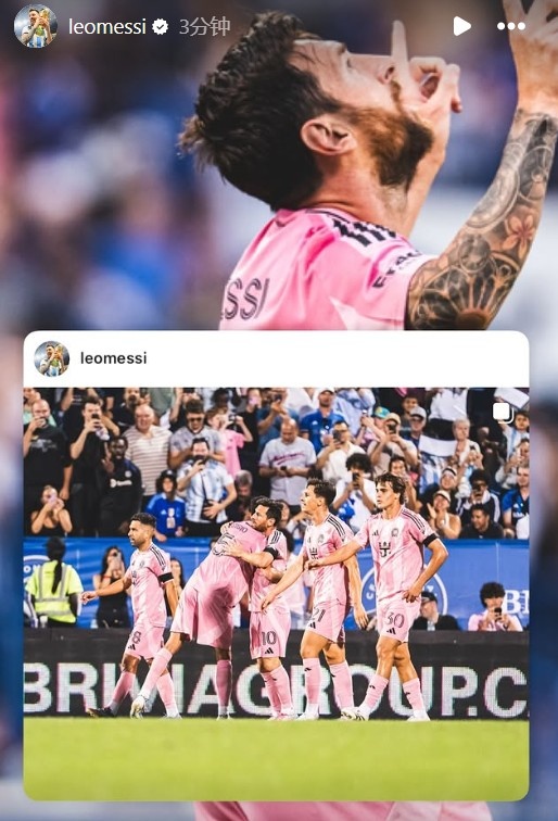 賽后梅西也在自己的社交媒體上曬照慶祝這場(chǎng)比賽的勝利。