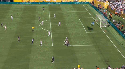 07月10日訊 世俱杯半決賽,巴黎對陣皇馬,阿森西奧禁區(qū)內失誤失球,登貝萊斷球橫傳,法比安推射空門得手,巴黎第6分鐘1-0領先。